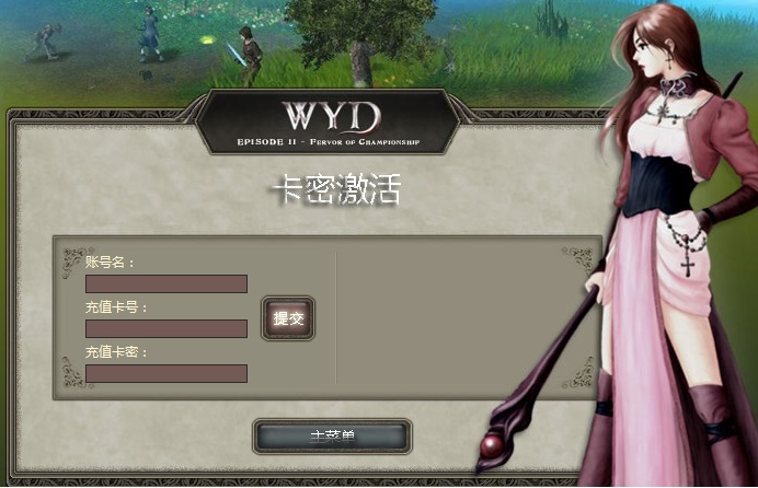 卡密激活步骤二:输入游戏登录账号、充值卡号、充值卡密,点击“提交”